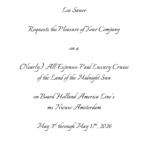 The house is closing today, and as soon as I receive the proceeds, I'll be booking the cruise. I'm expecting that to happen tomorrow, February 27th. As of this morning, our cabin is still available. Keep fingers, toes, and everything else crossed!