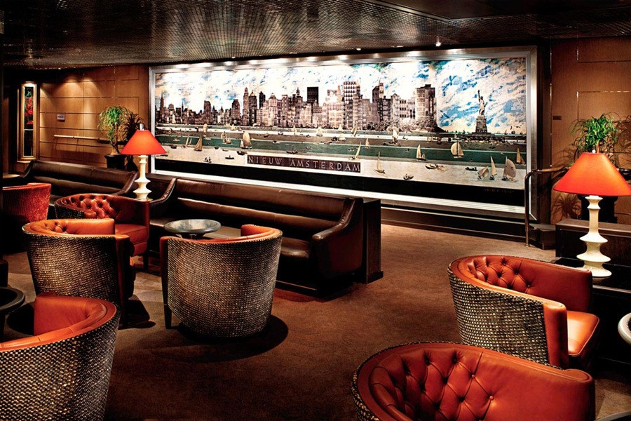 The Explorer's Lounge on the Nieuw Amsterdam has been through a lot of changes in recent years. From a favorite comfortable spot for relaxing, conversastion, and reading, it was transformed into the Lincoln Center Stage, a venue for classical performances (and a favorite of HAL cruisers). But, after Holland America's contract with Lincoln Center expired, while its name reverted to the Explorer's Lounge, although the rows of seats and the raised stage remained unused and rather sad.