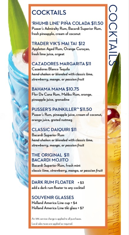 If nothing else, Lido Bar (midships port side Deck 9 - Lido Deck) on the Nieuw Amsterdam should go down in history as having what look like the most uncomfortable seats at any bar in the known universe. Clearly, the designer who thought it would be clever to have all the barstools be cast metal fish, with the tail of the fish splaying out to provide the perching spot for all the aging and substantial backsides of the Nieuw Amsterdam passengers deserves a special place in Hell.