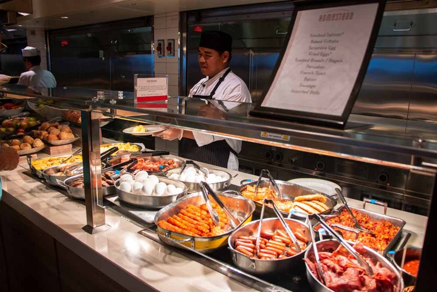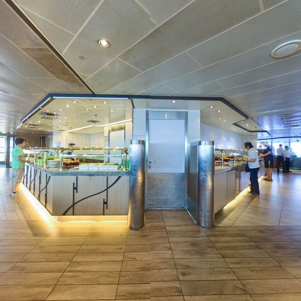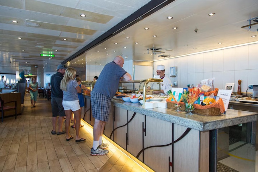 The Lido Market, one of the two principal Nieuw Amsterdam restaurants (the other is The Dining Room) included in your cruise fare, serves Breakfast, Lunch, and Dinner in a buffet format.