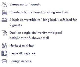 Neptune Suites are much larger than Signature Suites, their verandahs are much roomier with more furniture, they have significantly more storage space, and come with a host of other amenities that can really enhance your stay.
