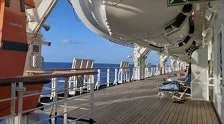The Outside Promenade Deck (Deck 3 - Promenade Deck) has a lot to like, starting with its traditional teak decking and polished teak railings, not to mention the incredible views and beautiful teak deck chairs in which to enjoy them. And, of course it's where your lifeboat muster stations are. But what's it doing in the Sports & Exercise section?
