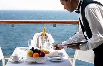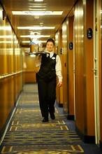 At breakfast, you have two options available. If you know what time you'll want it served (and that time is no later than 10 AM), you can put out the doorknob hanger your room steward will leave for you when he makes up your room in the evening. What you've ordered will be delivered at the time you've requested (give or take 15 minutes). My experience is that it's served on the dot at your requested time.