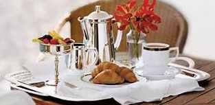 Breakfast is available from Room Service between 6 AM and 11 AM.