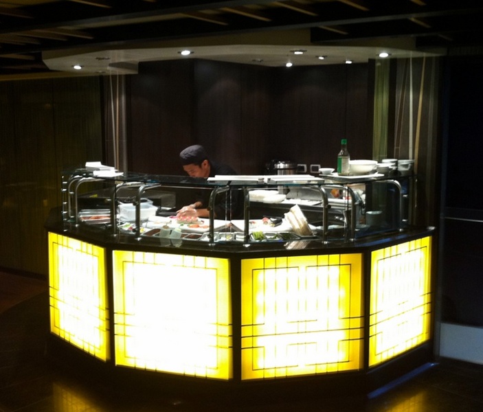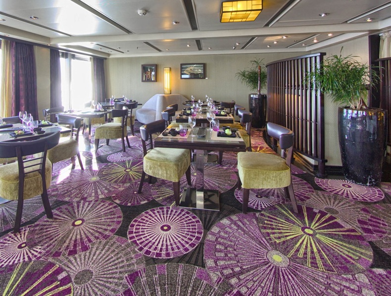 Tamarind is intimate, dimly lit, and romantic in atmosphere. Sharing the same space are the Tamarind Bar and Morimoto by Sea. The service is elegant and refined. The food is as good as any you'll find on any cruise ship, including the luxury premium lines.
