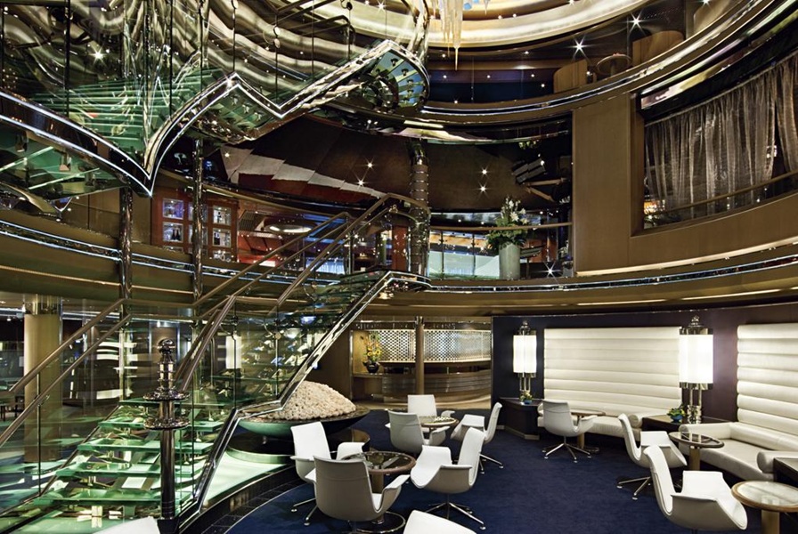 The Atrium is always the heart of any Holland America Line ship. It's physically in the center of the ship, spanning three decks and surrounded by some of the most heavily frequented spots on the Nieuw Amsterdam including Guest Services, the Future Cruises Desk, The Pinnacle Bar and Pinnacle Grill, and the Ocean Bar.