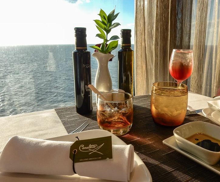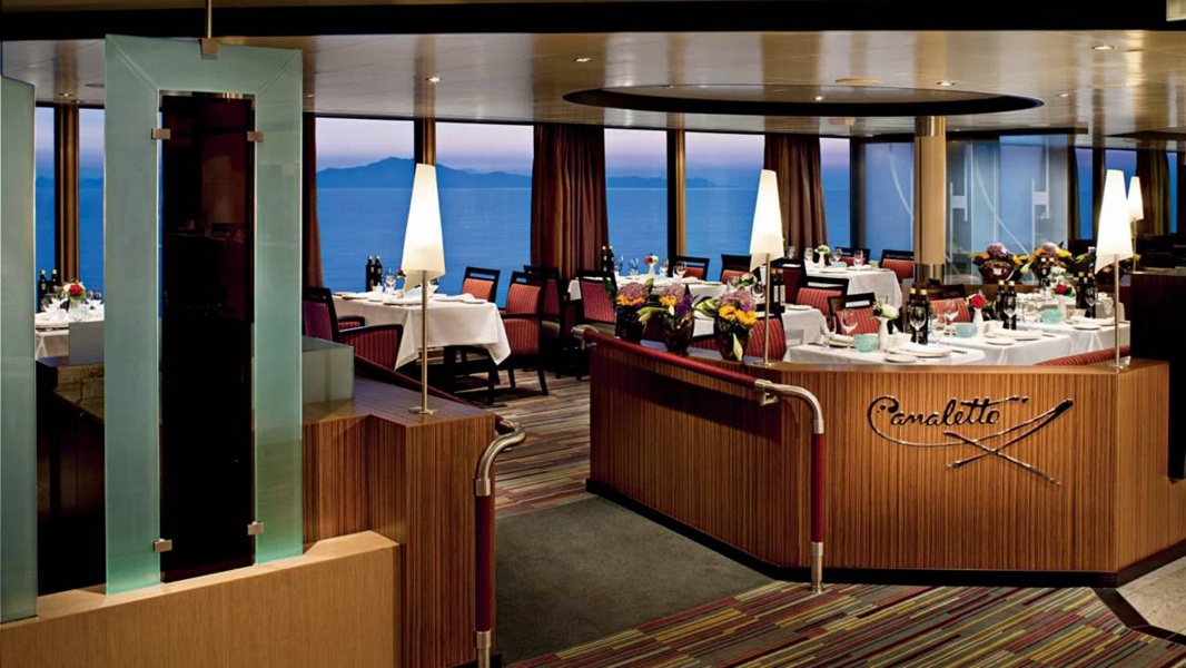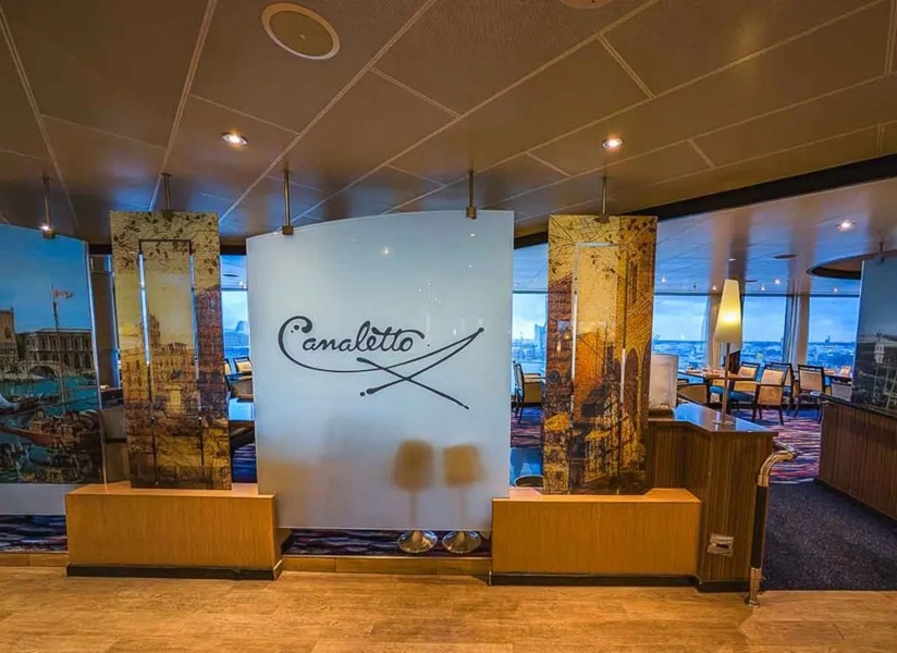 Canaletto is Holland America's Italian specialty restaurant. It's tucked into a corner of the Lido Market, and serves only dinner. As a specialty restaurant, it carries a $25 per person charge*.