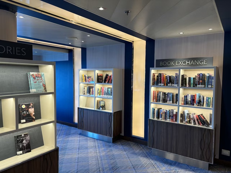 The Library (forward starboard side Deck 3 - Promenade Deck) offers a particularly comfortable spot to read and relax. It has hundreds of books you can borrow to read during the cruise as well as reference books and a "book exchange" where you can swap a book you've already read for something you haven't.