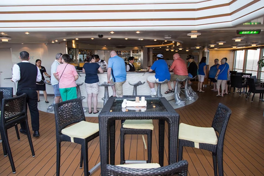 And, truth to tell, Lido Bar is less a place to congregate than a spot for waiters to get their orders filled for all those passengers around the Lido Pool and eating at Dive In or the Lido Market.