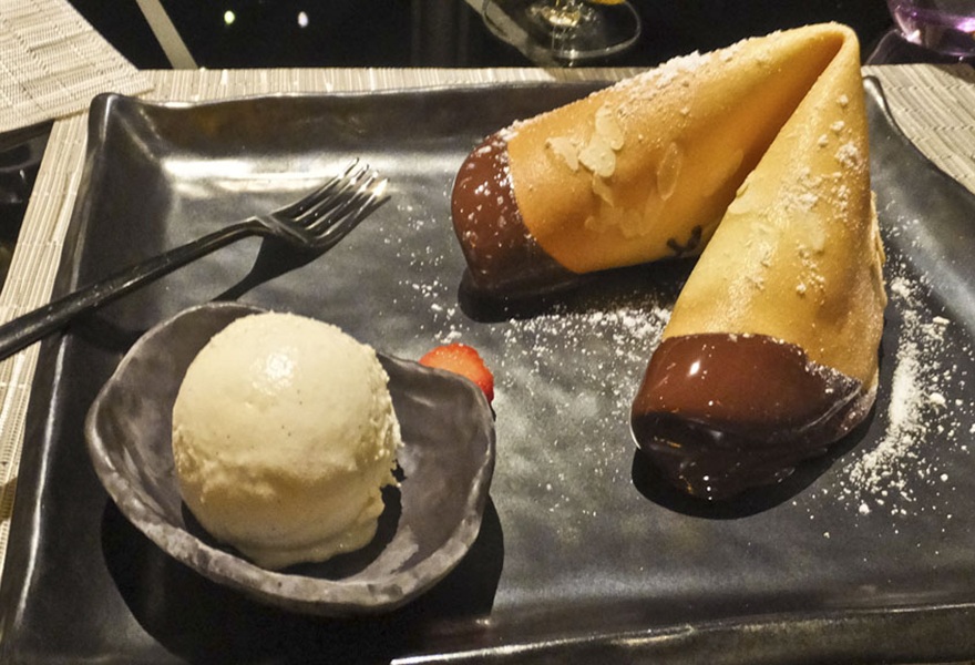 Tamarind is intimate, dimly lit, and romantic in atmosphere. Sharing the same space are the Tamarind Bar and Morimoto by Sea. The service is elegant and refined. The food is as good as any you'll find on any cruise ship, including the luxury premium lines.