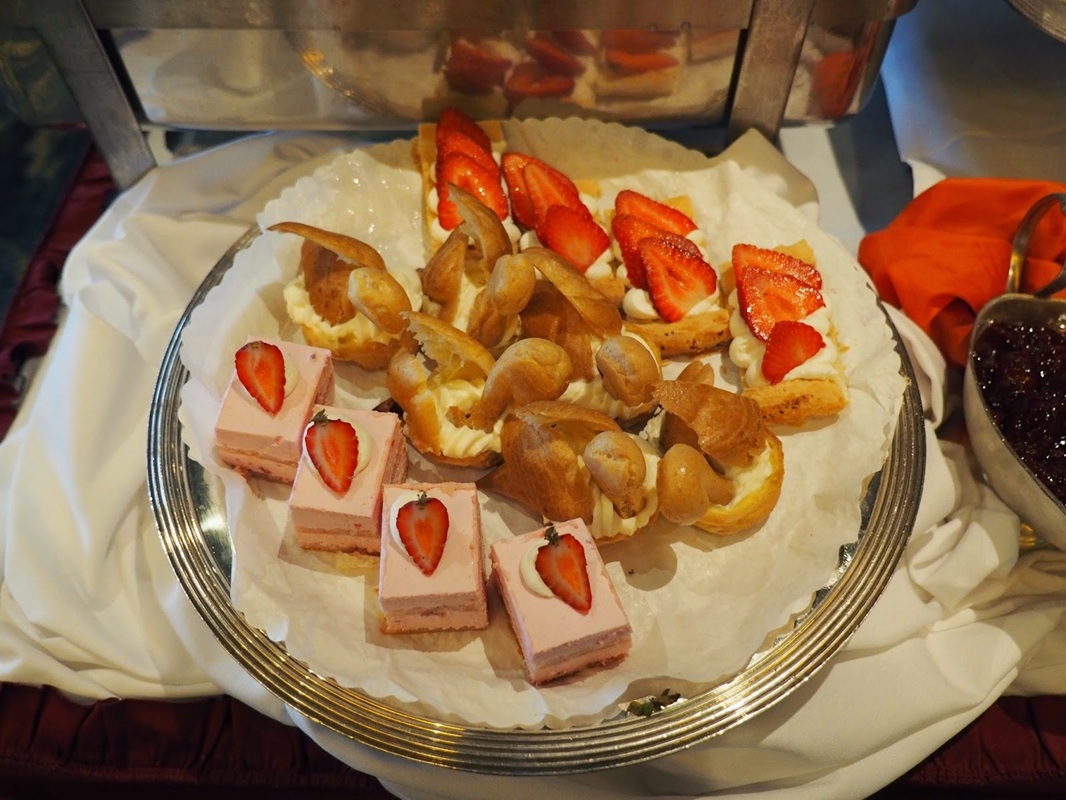 Each day at 3 PM, an elegant Afternoon Tea is served in The Dining Room. White-gloved waiters will serve you small finger sandwiches (cucumber, salmon, and egg are typical choices), beautiful tarts and pastries, scones with strawberry jam and clotted cream, and (of course) tea.